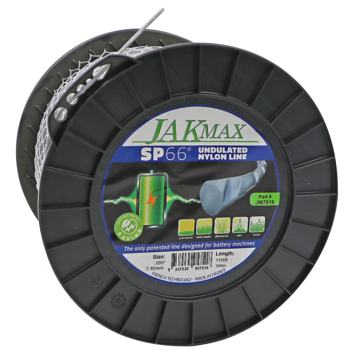 5lb Spool – .105″/2.65mm – SP66 Undulated Nylon Line. SP66® Undulated is the only patented line that has been specifically developed and designed for battery powered machines: giving longer battery run time! SP66® has a patented raw material blend which is very hard wearing and has a higher melting point that eliminates welding in the head. The unique shaping process provides an aerodynamic profile with less air resistance, less vibrations and reduced decibel emissions.